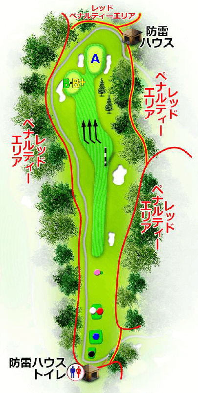 ティーショットでのフックボールは厳禁。 フェアウェイ右サイドから。 セカンドショットは打ち上げを考慮し大き目のクラブで。